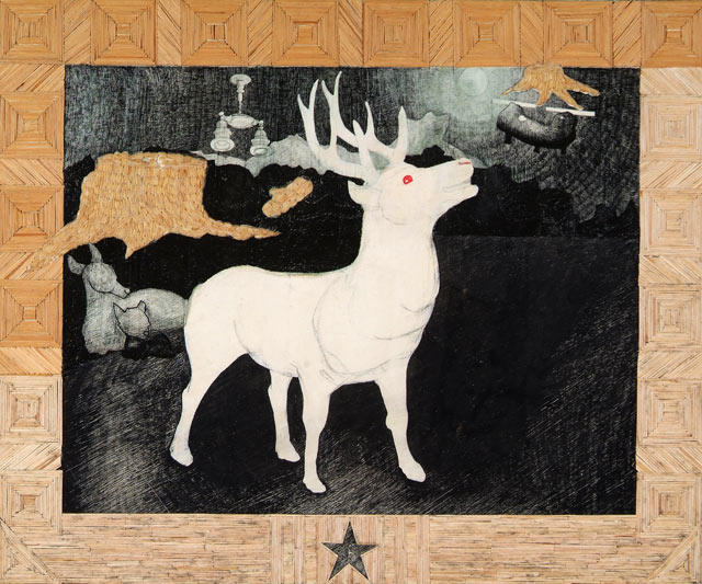 Mixed media, graphite, watercolor, toothpicks, on board with wood filler / 24" x 20" / 2008