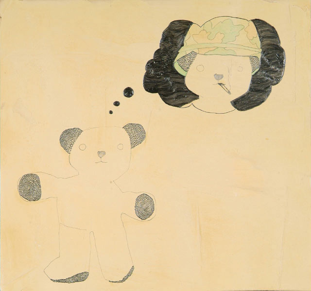 Mixed media, graphite, watercolor, on board with wood filler / 12" x 11.5" / 2008